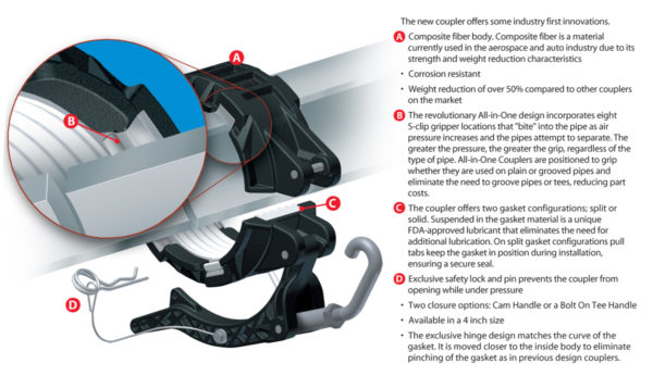 El acoplador todo en uno BlackMaxx incorpora muchas características para reducir drásticamente el costoso tiempo de inactividad de las reparaciones. El tiempo y los gastos de limpieza ahora se reducen drásticamente: simplemente alinee las tuberías y deslice rápida y fácilmente el acoplador todo en uno BlackMaxx de BTI.